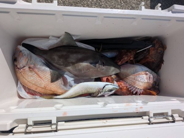 2026/02/22(日) アジ、チャリコ、ガシラ、 桜本さん アジ 30cm 2匹、 ガシラ 20〜22cm 10匹、 チャリコ 27cm 2匹、 ウマズラ 30cm 1匹、 イシモチ まじり。 - Powered by PHP工房 -